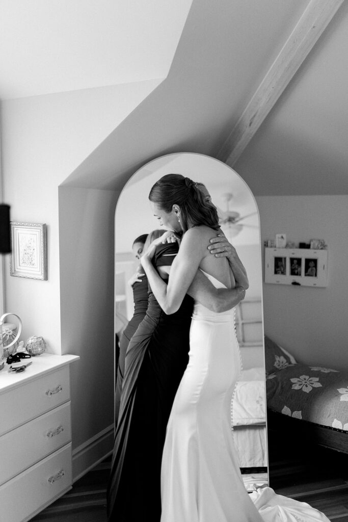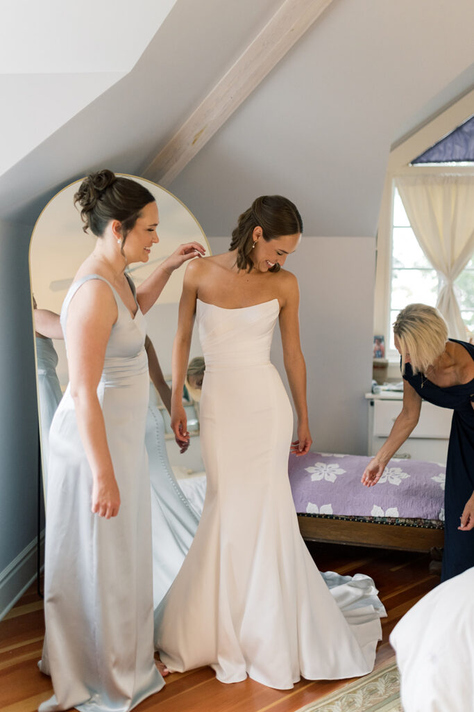 The day began with Elly and her girls getting ready in the very home where she spent those summers. There was an ease to the morning with so much familiarity, laughter, and genuine excitement. Every corner of the house, paired with the lake just outside, made for such a naturally beautiful and sentimental backdrop. Capturing photos in such a beautiful space made it hard not to be excited for the rest of the day!