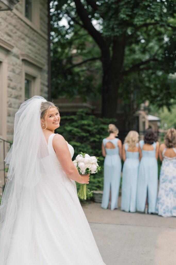 Tucked away in the club’s beautiful backyard, the ceremony felt intimate and warm. It was an elegant garden moment that set the tone for the day. Soft pastel blues wove their way through every detail, from the florals to the subtle accents, creating a palette that felt delicate, romantic, and effortlessly refined. The light was stunning during portraits … it was breathtaking! The light wrapped the club in a soft glow, illuminating Sophie and Owen with a dreamy, ethereal warmth. It was one of those fleeting moments —pure magic, perfectly unplanned yet unforgettable. I felt lucky to capture it!